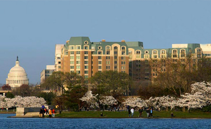 This brand new luxury hotel is a five-star hotel and spa that can only be described as elegant. Recently, Institutional Investor Magazine ranked the hotel as one of the Top 100 Hotels in the World. The hotel has an understated, classic beauty with lots of creams and deep brown colors throughout the hotel and the ballrooms. The main ballroom can seat up to 625 people and the hotel sits amongst beautiful gardens filled with charming Cherry Blossom Trees. The rooms provide beautiful views of the Potomac River and the city sky line.